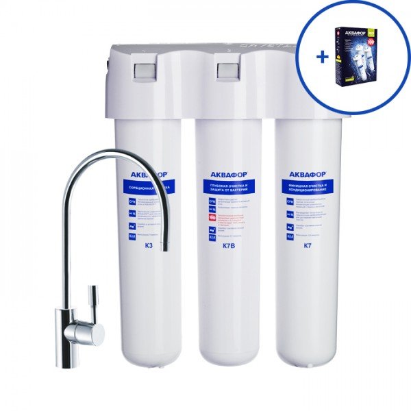 Обратноосмотические фильтры используются для абсолютной защиты от накипи, т.к. полностью устраняют соли жесткости из воды.нетЧисло ступеней очисткиКартриджи последовательно очищают воду и от видимых примесей, и от растворенных. Первый картридж задерживает более крупные частицы, а каждый последующий - более мелкие. Чем больше ступеней - тем лучше фильтр очистит воду: поймает более мелкие видимые частицы ржавчины, песка и ила, успеет захватить из воды максимум растворенных примесей - хлора, нитратов, тяжелых металлов и других.4МинерализацияПроисходит после финишной очистки воды. Необходима прежде всего в фильтре обратного осмоса, поскольку такой фильтр полностью устраняет из воды все примеси, в том числе минералы. Минералы добавляются в оптимальной концентрации - для пользы и привычного вкуса воды.нетПостфильтрацияФинальный этап очистки воды: картриджи постфильтрации удаляют самые мелкие механические частицы и кондиционируют воду, придавая ей более приятный вкус.нетНакопительная емкостьОбычно нужна в фильтрах обратного осмоса. Глубокая фильтрация требует времени. Чтобы Вам не приходилось ждать, пока вода наберется в чайник или кастрюлю, почти во всех моделях используется накопительный бак для чистой воды или другая емкость. В стандартном фильтре обратного осмоса под мойку воды в баке достаточно для семьи из 5-6 человек.нетФильтрующий модуль в комплектедаОтдельный крандаДавление в водопроводе не более, атмМаксимальное давление воды на входе в систему, при котором возможна стабильная работа фильтра.6,5Ширина, смОбратите внимание на габариты фильтра, и измерьте, сколько свободного пространства в предполагаемом месте установки.26,0Глубина, смОбратите внимание на габариты фильтра, и измерьте, сколько свободного пространства в предполагаемом месте установки.9,0Защита корпуса от гидроударовдаИсходная водаЖесткая вода – вода с избытком минеральных солей. От нее появляется накипь в чайнике, известковый налет на сантехнике и разводы на посуде. Мягкая вода – та, в которой мало минеральных солей. Нет накипи в чайнике и разводов на посуде. Фильтры для мутной воды и фильтры от ржавчины, как правило, имеют несколько стадий очистки и дополнительный полипропиленовый картридж. Он задерживает механические частицы ила, песка и ржавчины и защищает картриджи более глубокой очистки.мягкаяУстраняет мутностьМутность водопроводной воды может говорить о том, что в ней много мелких механических частиц. Важно, чтобы в фильтре был установлен дополнительные картридж механической предфильтрации (полипропиленовый) - он продлит жизнь остальным картриджам более тонкой очистки.даУстраняет ржавчину, бурый осадокЛюбой фильтр под мойку удалит из воды крупные и мелкие частицы ржавчины. Некоторые фильтры имеют повышенный ресурс по железу: они дольше служат в такой воде, поскольку лучше подходят для удаления из воды железа и механических частиц ржавчины.даЗащита от бактерийВсе проточные фильтры в той или иной степени защищают от бактерий. Например, добавление серебра препятствует их размножению. Это стандартная степень защиты. Если в семье есть дети, пожилые люди или аллергики, воду рекомендуется обеззараживать, то есть полностью удалять микроорганизмы. Повышенную защиту от бактерий дают фильтры с половолоконной мембраной. Это пучок трубо
